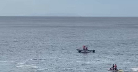 現場写真には、海に出た小型ボートや救助隊員の姿が写されており、まさに一刻を争う捜索活動が行われている様子が映し出されています。