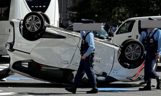 2025年9月25日午後1時過ぎ、東京都港区赤坂1丁目の「特許庁前交差点」で、乗用車が横転する重大事故が発生しました。