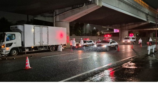 事故は午後11時過ぎ、川崎市川崎区四谷上町25付近の産業道路・上り線で発生。