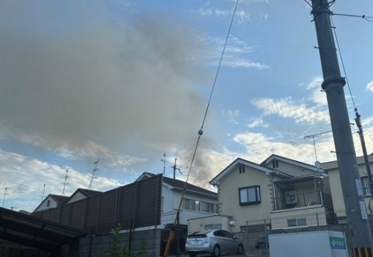 SNSに投稿された画像・動画では、濃い黒煙が上空高くまで立ち昇り、周囲の住宅にも延焼の危険があるような状況が確認できます。