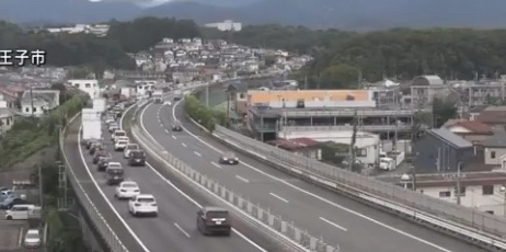 現場は東京都八王子市叶谷町周辺で、ライブカメラには事故処理や渋滞する車列の様子が映し出されています。