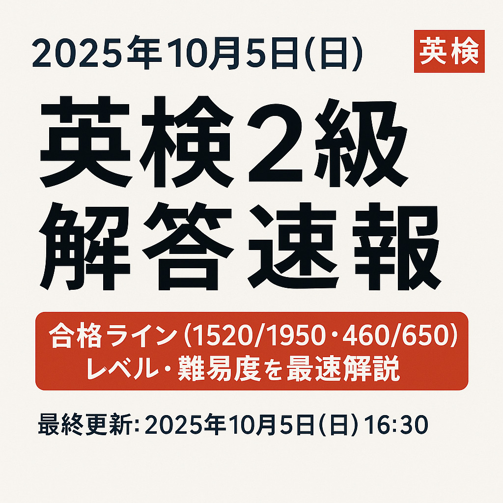 【2025年10月5日(日)】英検2級《解答速報・完全版》|合格ライン(1520/1950・460/650)・レベル・難易度を最速解説