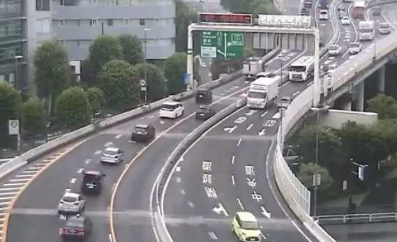 「首都高C1外回り・竹橋ジャンクションの事故、ライブカメラに映ってますね。ここ合流してすぐ右側車線入ってくる車たまにいるから怖いんだよな…」