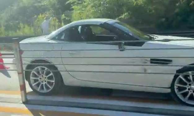 また、現場を通りかかったドライバーによると、白いクーペタイプのスポーツカーがガードロープ付近で停止しており、車体の側面に損傷が確認できたとのことです。