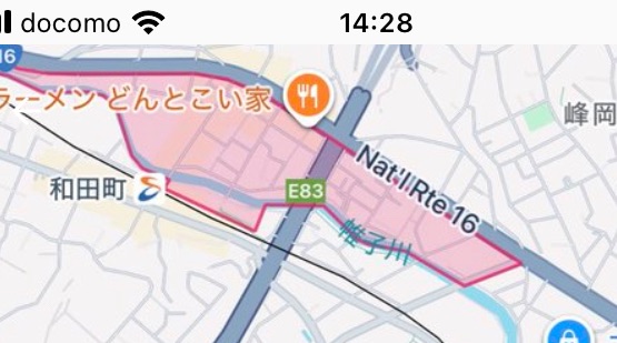 地図上では「ラーメンどんとこい家」周辺の住宅地(和田町エリア)に該当します。