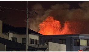 「役場近くの和久で火災。夜空を真っ赤に染めている」