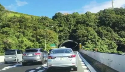 現場はトンネル手前の坂道区間で、通行車両が一気に減速している様子が確認されています。