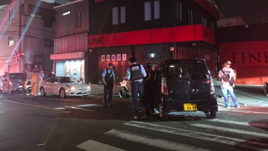 現場では黒色の軽自動車と白い車が衝突したとみられ、