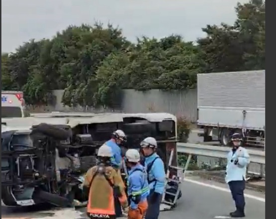 2025年10月14日午前、埼玉県深谷市小前田の関越自動車道上り線・花園インターチェンジ付近で、キャンピングカーの横転事故が発生した。現場では警察・消防が出動し、2車線規制が続いている。
