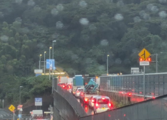 🚧 現場の状況:大型車がトンネル内で事故 上下線ともに渋滞発生