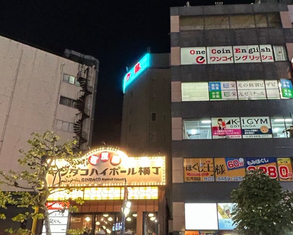 周辺には「築地銀だこ」や「One Coin English 五反田校」「K-1 GYM GOTANDA」などが入るビルが立ち並び、夜間も多くの人が行き交うエリアです。