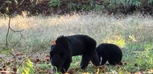 SNSでも目撃写真が拡散しており、2頭のクマが草地で採食している様子が確認されています。