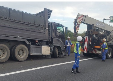 現場では、レッカー車が出動し、損傷したトラックを移動させる作業が続けられました。警察および道路管理会社による復旧活動が行われています。
