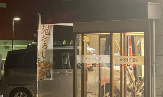 「吉野家にすごい駐車してる車いるなぁと思って見たら、入り口に車体半分突っ込んでた」