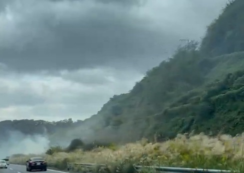 実際に現場を通行していたドライバーが撮影した画像では、山肌沿いから立ち上る黒煙が確認でき、道路脇には緊急車両が出動している様子も見られました。