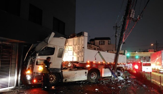 現場からの画像には、大型のトラックが建物の壁に激しく突っ込み、車体と周辺が破片で散乱しているという、衝撃的な状況が捉えられています。