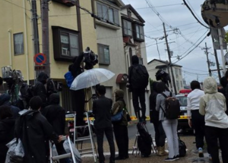 アップロードされた写真からは、小雨が降る中で多数の報道カメラマンが脚立に乗り、現場の様子を必死に捉えようとする様子が確認できます。これは、事件の重大性と社会的な関心の高さを示しています。