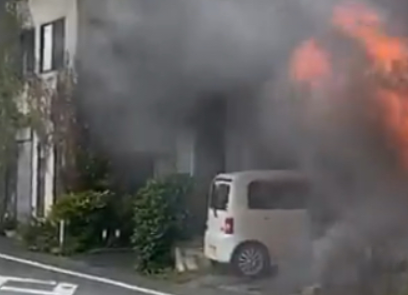 現場で撮影された画像によると、建物の一部から激しい炎が上がり、あたりには大量の黒煙が立ち込めている緊迫した状況が確認できます。住宅のそばに駐車されていたと見られる白い軽自動車の近くからも炎と煙が出ており、火の回りが早いことがうかがえます。
