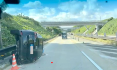 情報提供者からの報告と添付された画像によると、事故は名和(なわ)インターチェンジの手前で発生した模様です。
