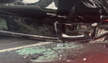 - 道路上には破片が散乱しており、事故の激しさを物語っています。