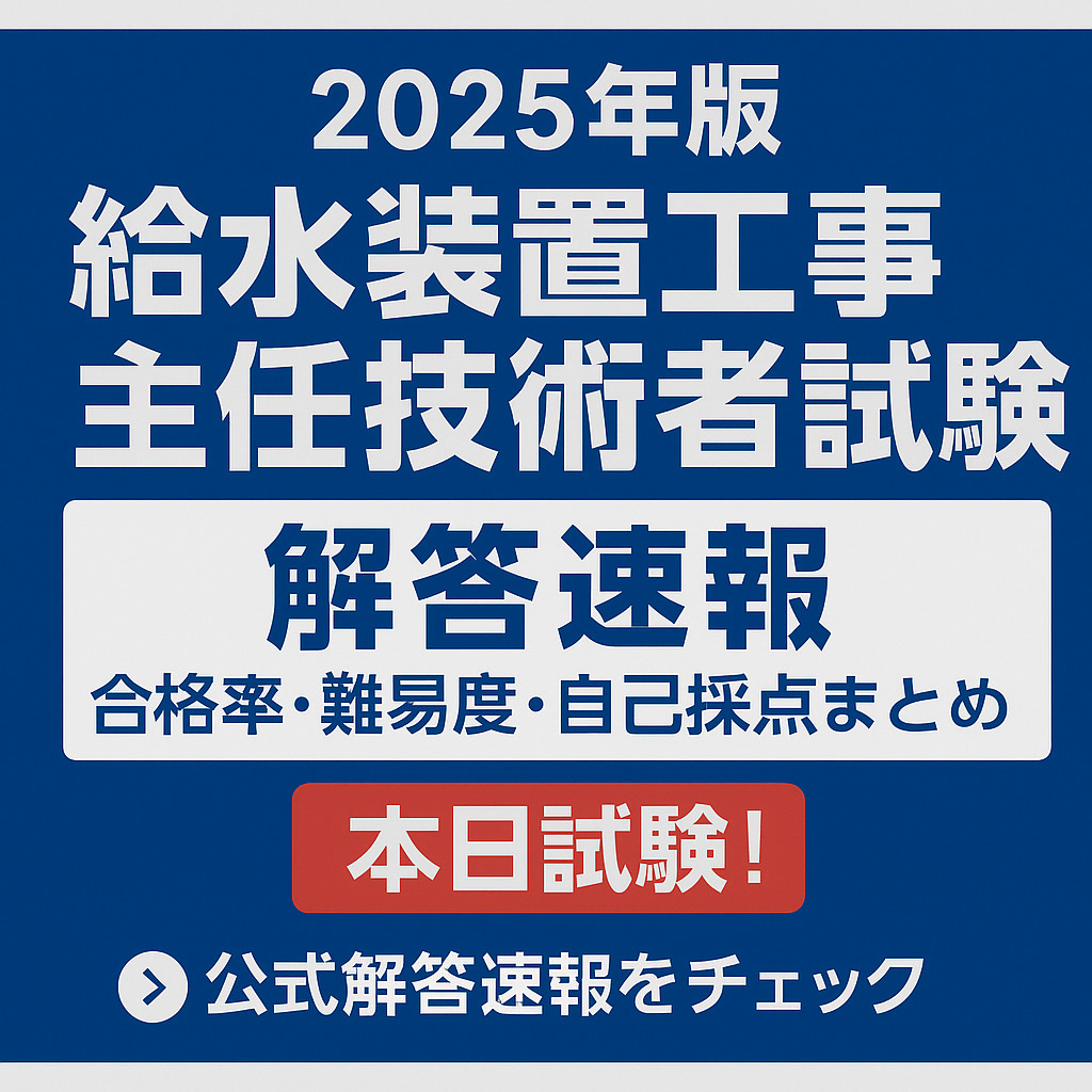 🕒 この記事は 2025年10月26日(日)実施の「給水装置工事主任技術者試験」 を受験された方向けの最新速報ページです。