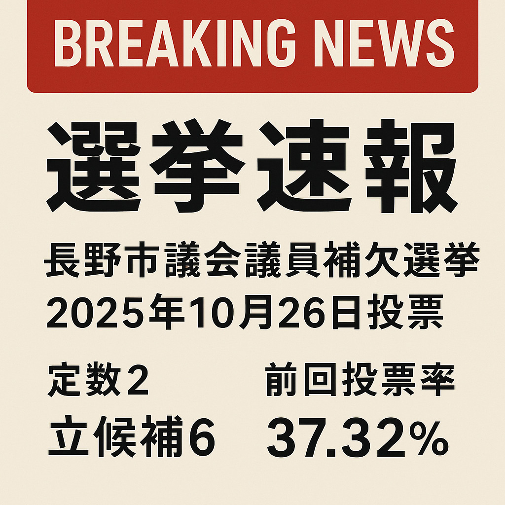 🗳【速報】長野市議会議員補欠選挙2025 開票速報・結果予想|2議席をめぐり新人6人が激戦!