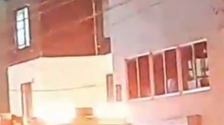 提供された画像からは、夜間の住宅街において建物から強い光(炎または反射光)が見え、消防車(SAPPOROの文字を確認)が活動している様子が確認できます。