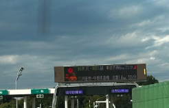 現場付近の交通情報板では、事故による深刻な混雑が示されました。
