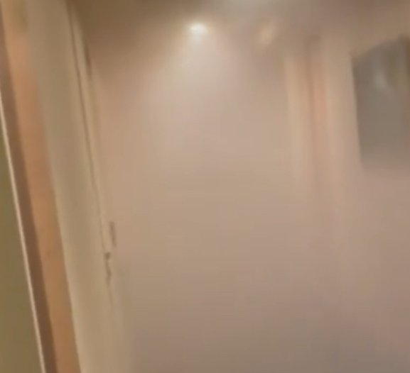 「宿帰ってきたら燃えてて帰れん…」 「隣のホテルが火事?避難してるような?」