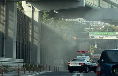 - 横転した車両は左車線側に倒れているとのこと。