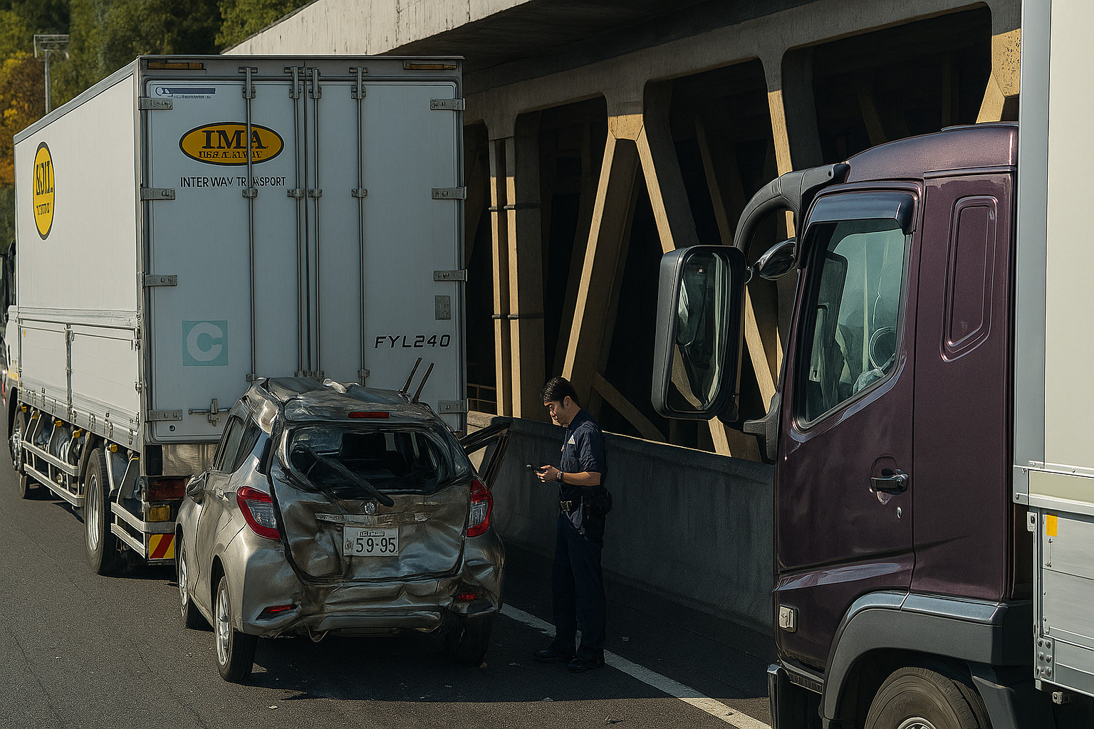 - 概要:乗用車・貨物車**計3台**が絡む**人身事故**(詳細確認中)。