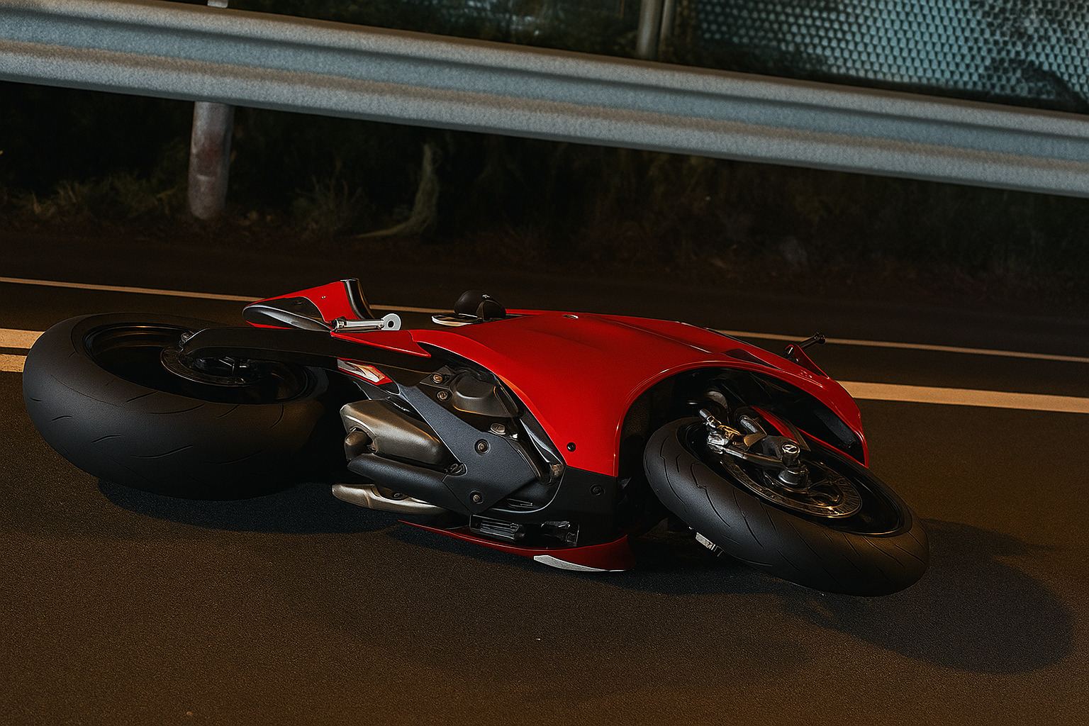公開されている画像には、夜間の高速道路上に横たわる赤いバイクが確認でき、事故の状況の深刻さを物語っています。