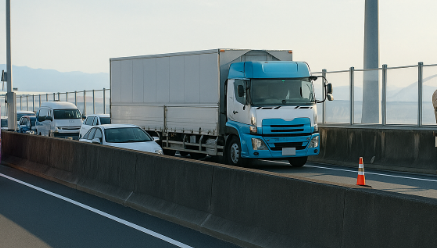 現場は湾岸線でも交通量が多く、大型トラックの通行が多い区間。わずかな判断ミスが致命傷になるエリアだ。