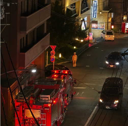 - 現場の様子: 通報を受け、現場には消防車やパトカーなど多数の緊急車両が駆けつけました。画像には、夜間の繁華街とみられる場所に停車する緊急車両の赤い光が映し出されています。現場は規制線が張られるなどして、警察による状況確認と、消防による救助活動が行われているとみられます。