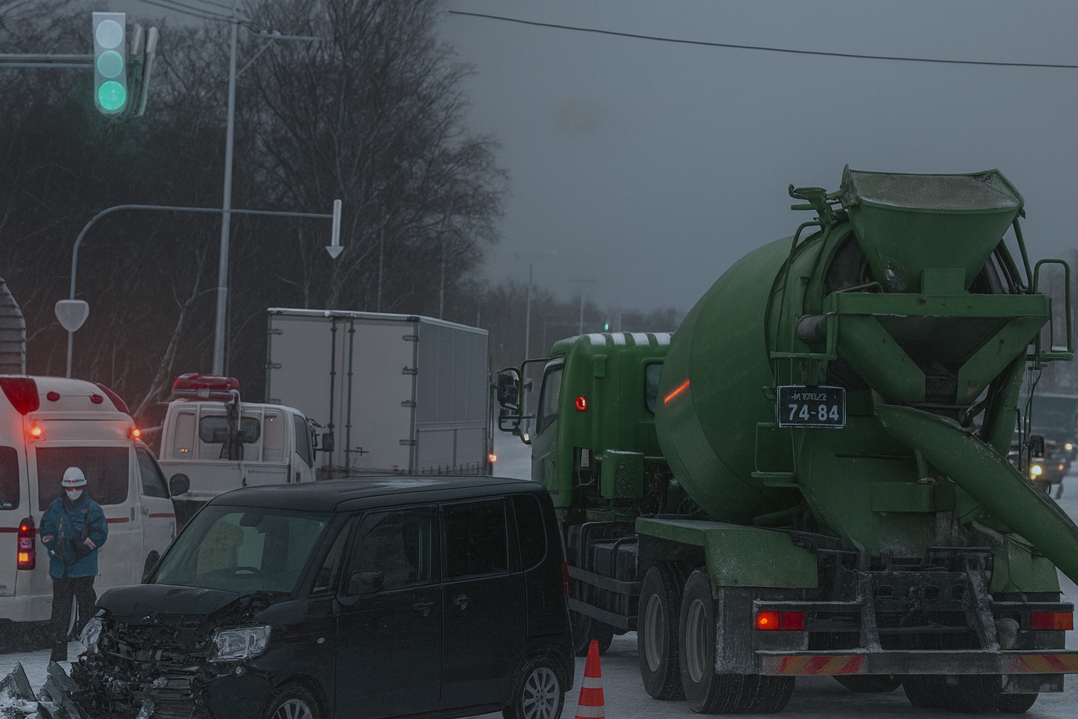 本日2025年11月18日(火)午前7時04分頃、北海道石狩市新港西3丁目を走る国道337号線の交差点付近で、大規模な交通事故が発生しました。