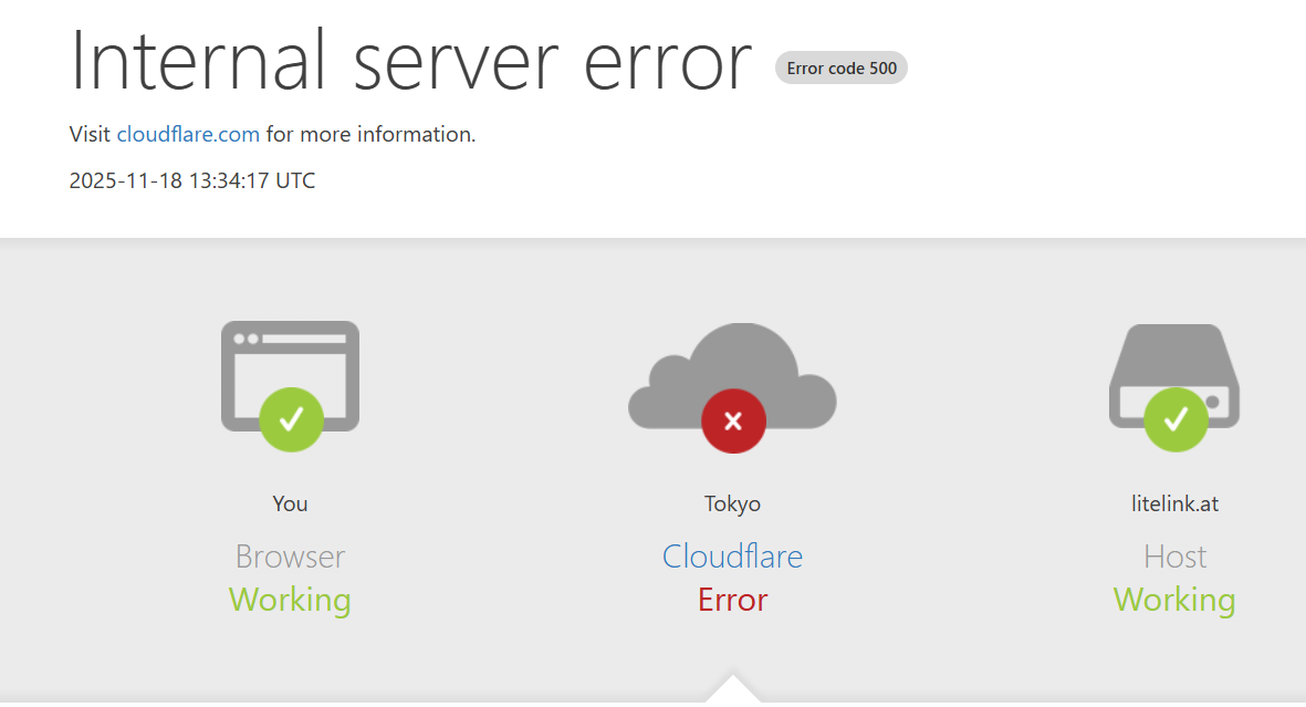 2025年11月18日、世界的なネットワークインフラ企業Cloudflare(クラウドフレア)で発生している大規模障害の影響が、ついに日本の金融サービスにも波及している可能性があります。JCBカードの公式ウェブサイト(または会員向けサービス)にアクセスしたユーザーから、「500 Internal server error」が表示され、アクセスできないという報告が寄せられています。