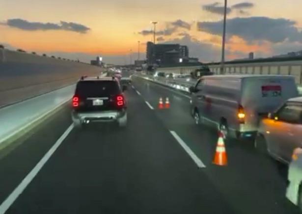 現場画像からは、すでに車線規制が行われ、渋滞が激しくなっている様子が確認できます。