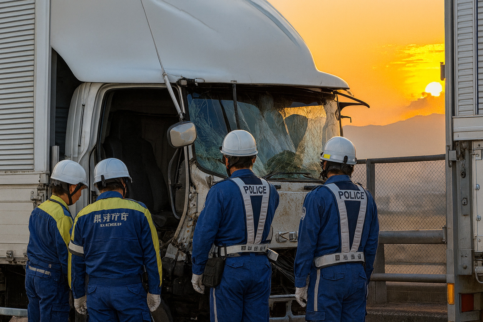 - 被害状況:トラックのキャビン(運転席)が大破し、前の車両に食い込むほどの激しい衝突。