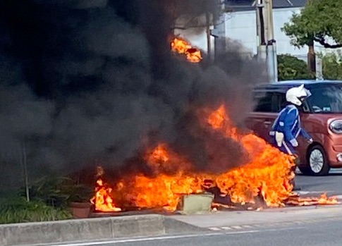 2025年11月21日(金)午後、静岡県静岡市清水区吉川付近の国道1号(上り線)において、原付バイクを含む車両火災が発生しました。