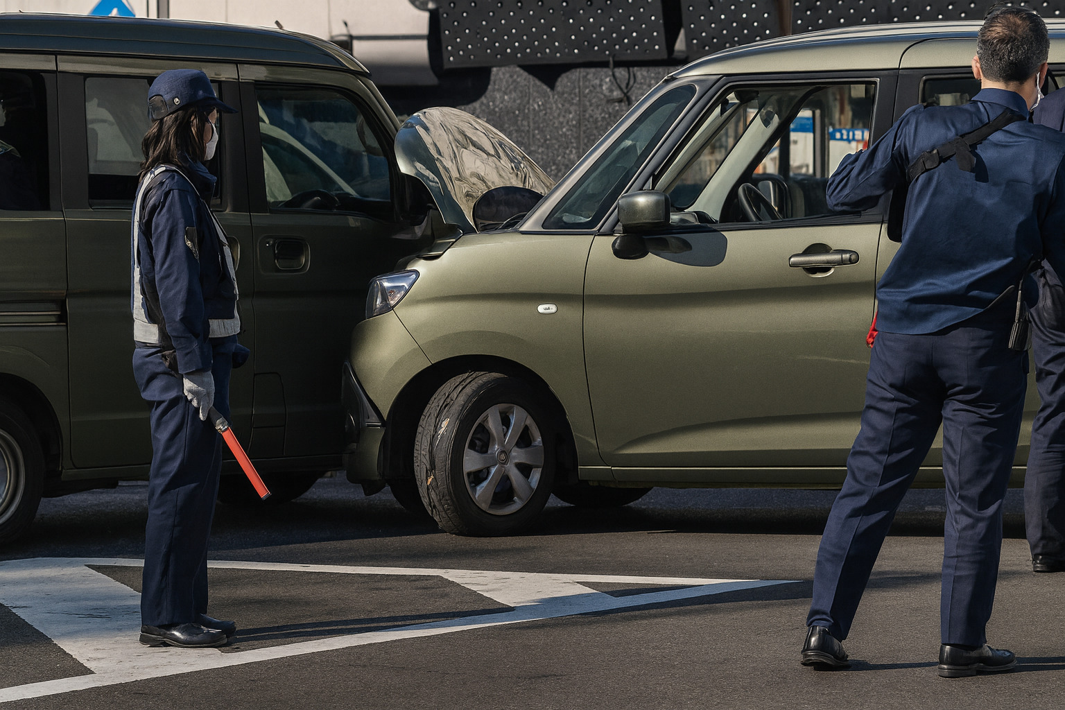 - 状況: 乗用車同士(軽自動車とワンボックスタイプ)の衝突事故とみられます。