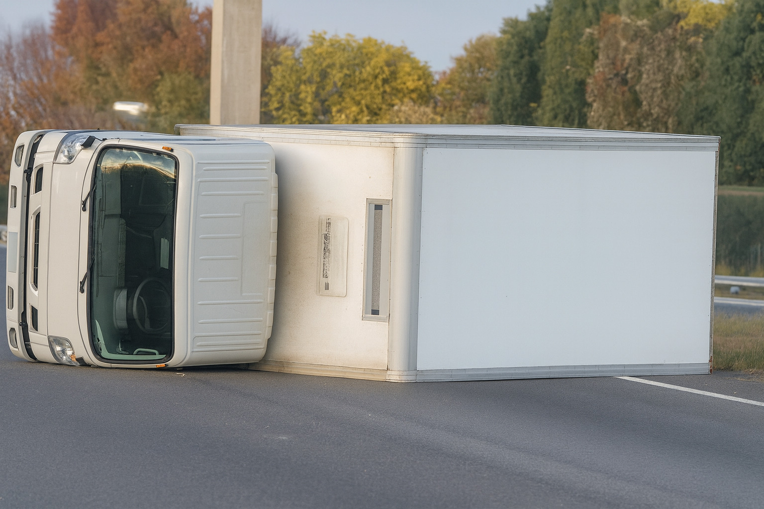 • 状況:トラックが横転し、2車線を塞いでいる模様。