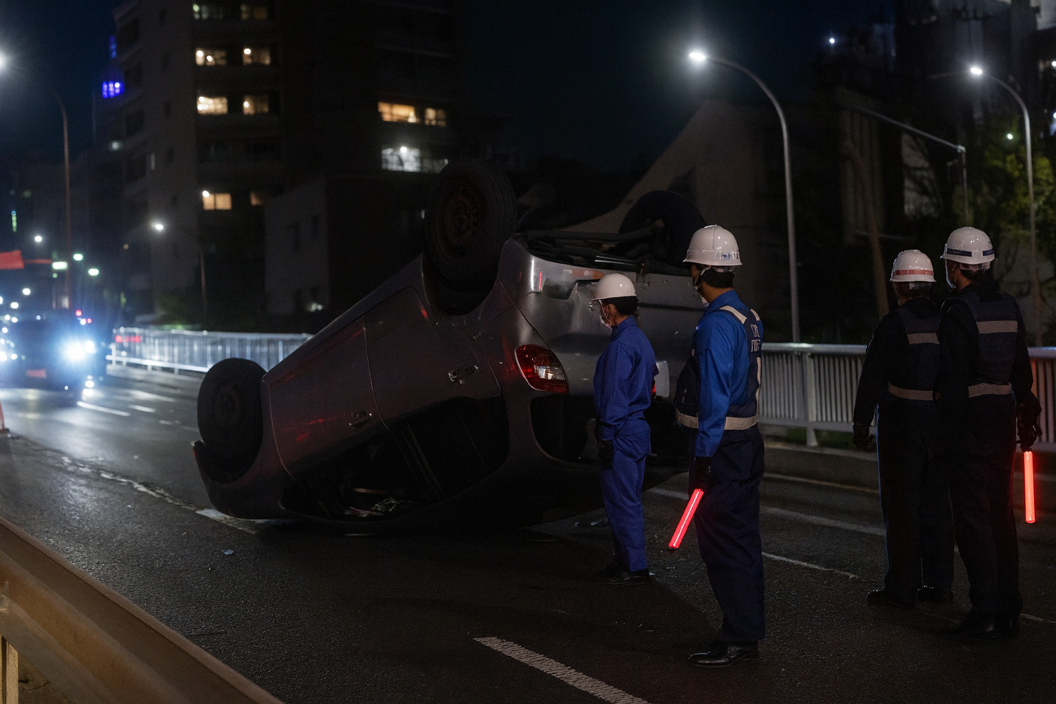- 事故状況: 乗用車が道路上でひっくり返る「横転事故」が発生