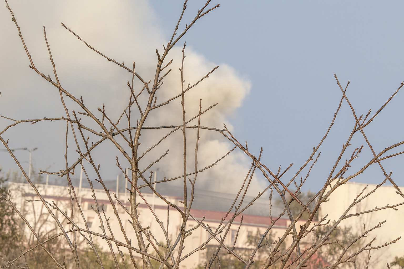 現在も消火活動が続いています。付近を通行する際は、絶対に路上駐車をして現場を見に行く等の行為はおやめください。緊急車両の妨げとなります。