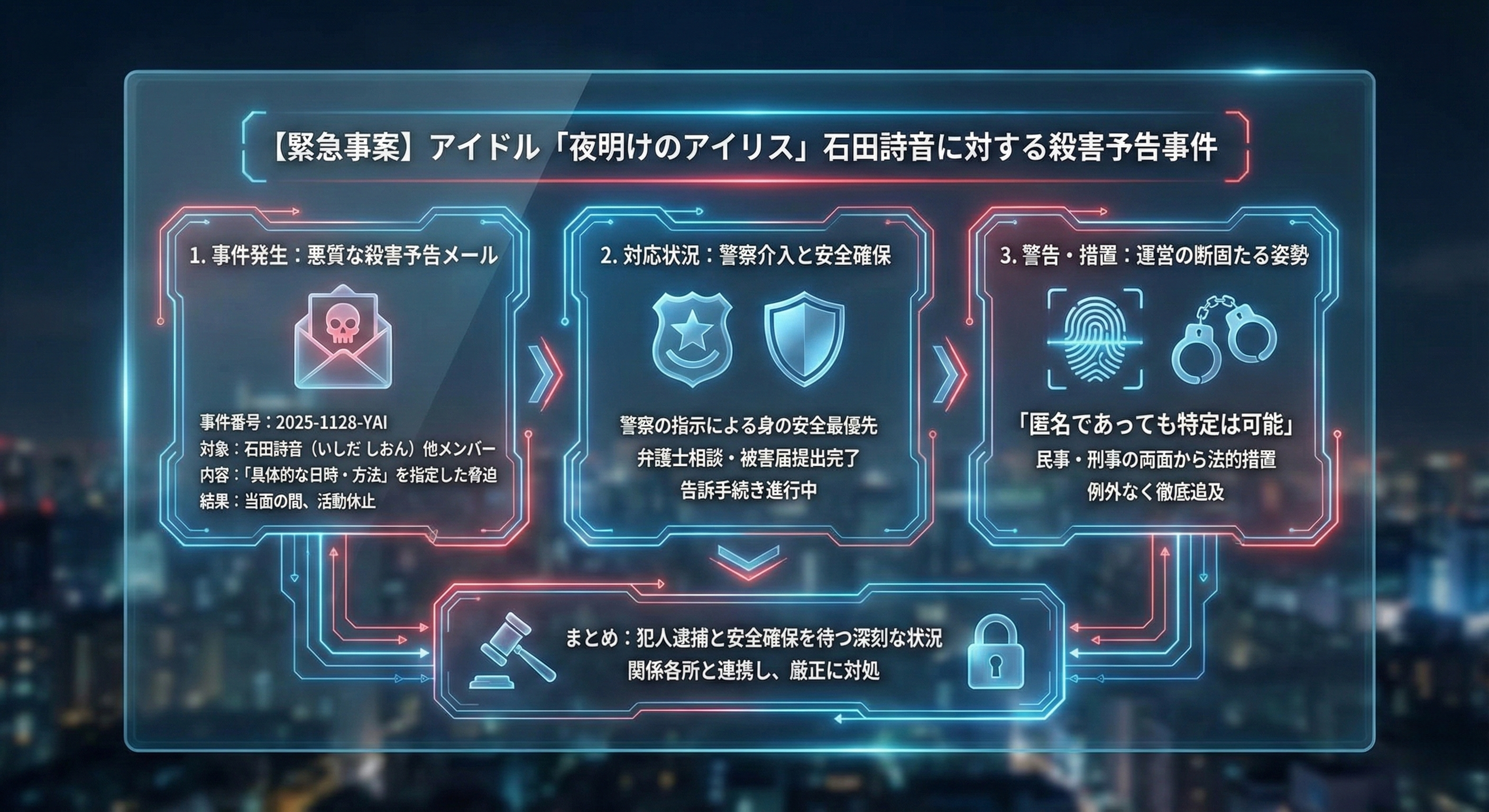 夜明けのアイリス石田詩音が殺害予告を受け活動休止
