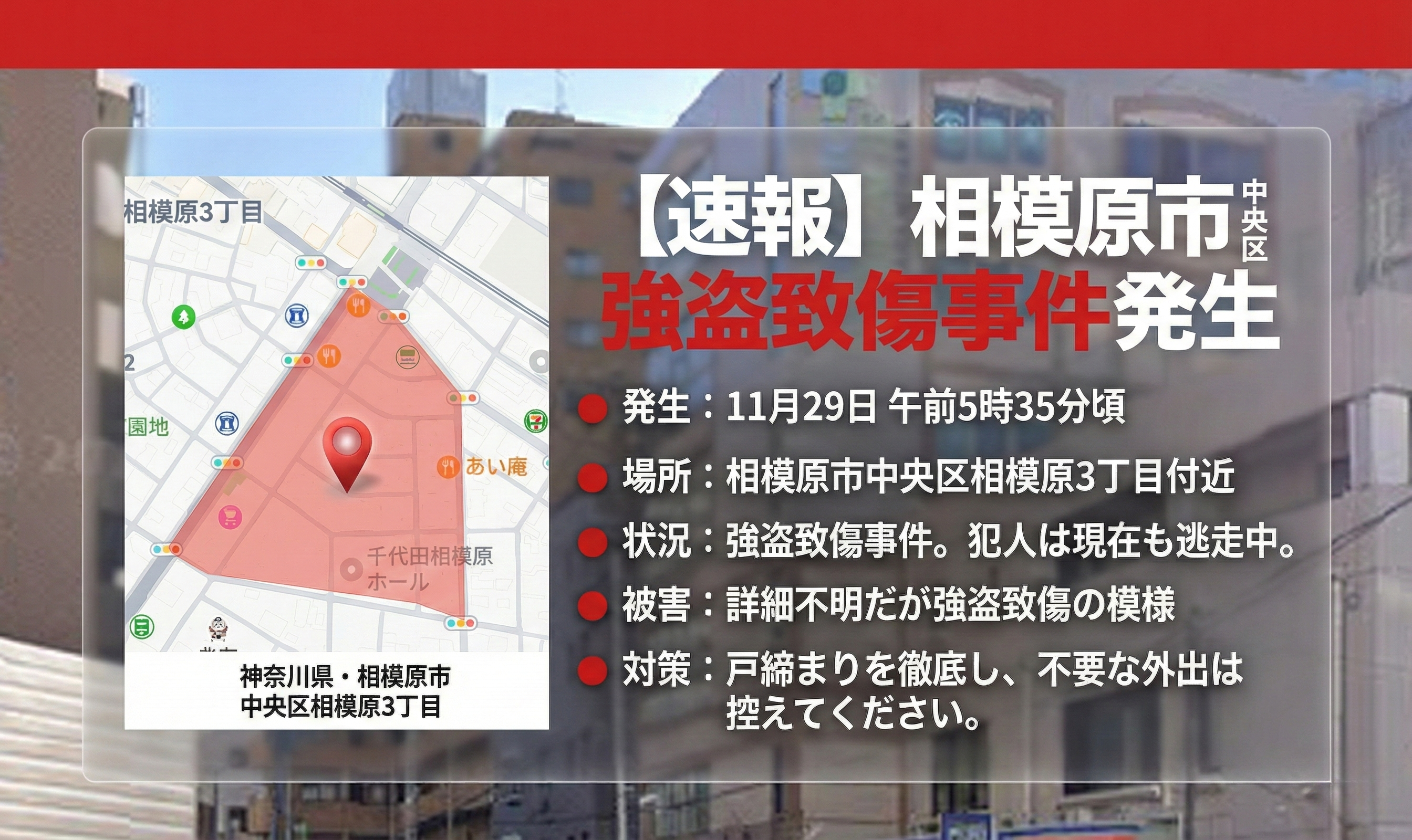 2025年11月29日早朝、神奈川県相模原市中央区の住宅街で、強盗致傷事件が発生しました。