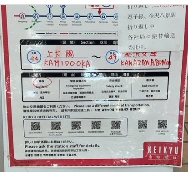 「能見台駅で人身事故発生とのアナウンス」