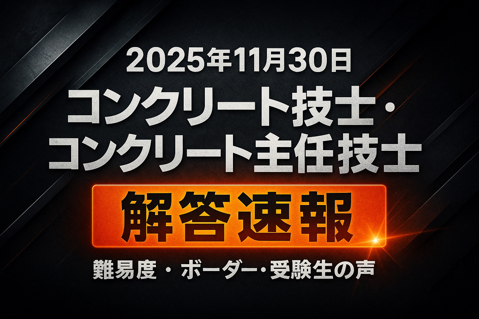 2025年11月30日(日)に実施された「コンクリート技士」および「コンクリート主任技士」試験の最新解答速報、難易度分析、合格ライン予想を速報でお届けします。