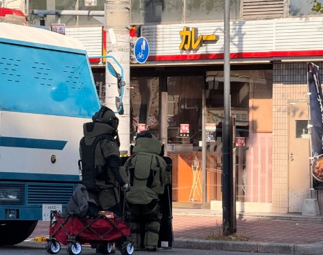 • 爆弾処理班の出動:対爆スーツ(防護服)を着た隊員が盾を持って作業を行っている様子が目撃されています。