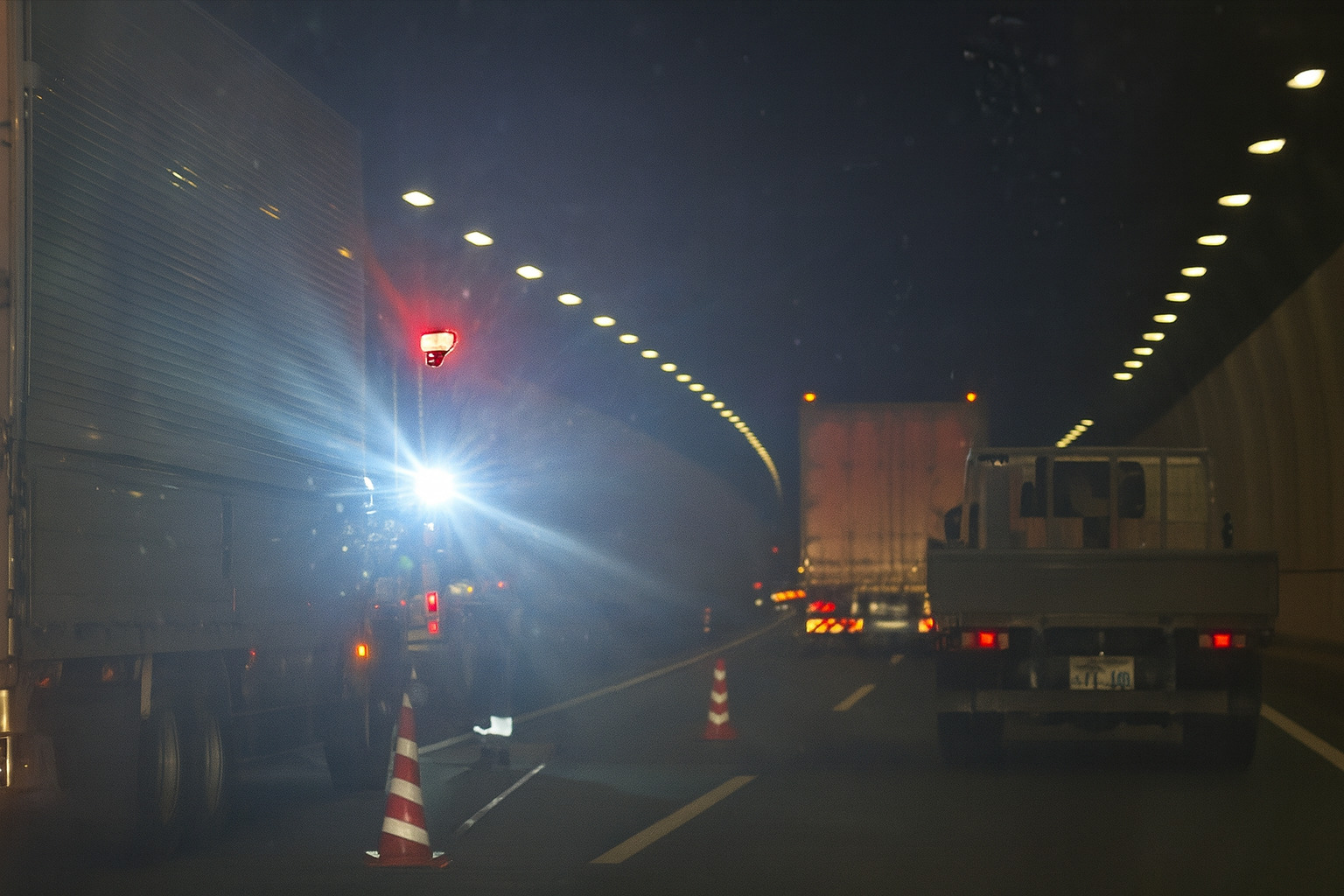 SNS上では、トンネル内での渋滞や、動かない状況についての報告が上がっています。現場は左側車線が規制されており、右側車線への合流が必要となるため、ボトルネック状態となっている模様です。
