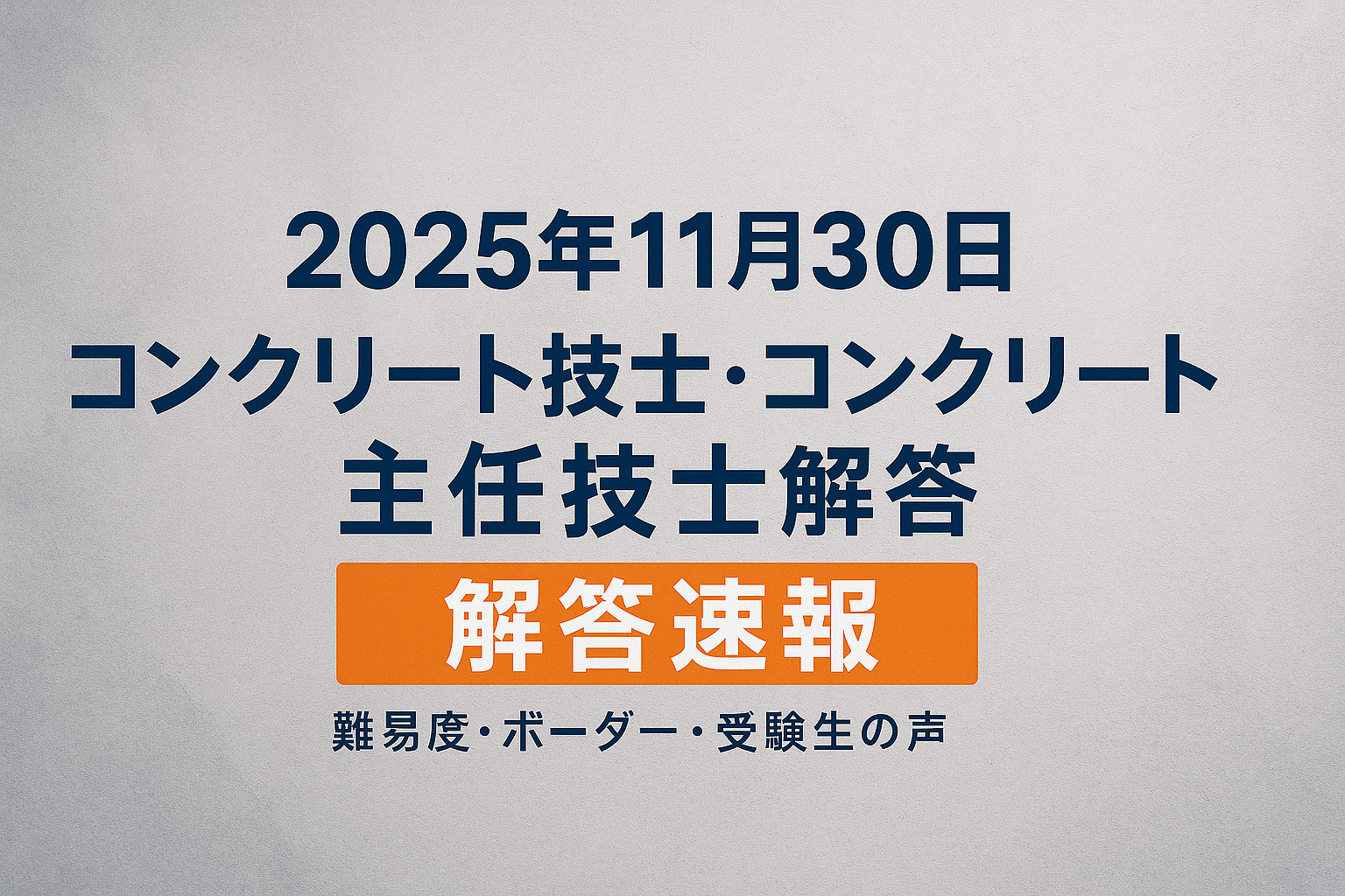 【2025年11月30日】コンクリート技士・コンクリート主任技士《解答速報》本日実施|難易度・ボーダー予想・受験生の声